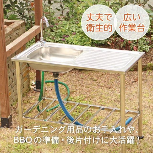 谷村実業 蛇口付きステン作業台付き流し台100cm TAN 3025 流し台 ステンレス 屋外 ガーデニング