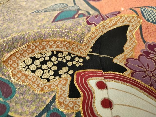 平和屋着物 豪華振袖 駒刺繍 舞蝶花文 金彩 正絹 ps