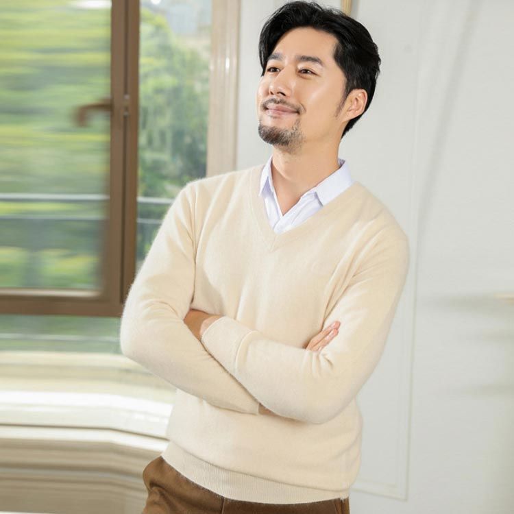 ごわつかない程度の厚さなので、ワイシャツの上に着てもすっきりと着こなせます。