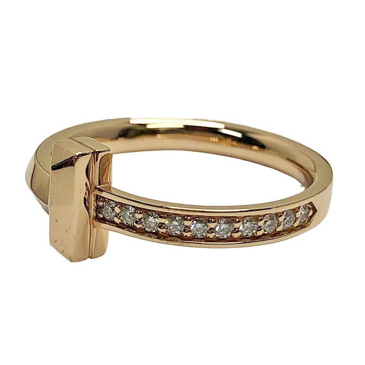 Tiffany-Co. ティファニー Tワン ナロー ハーフエタニティ ダイヤモンド リング 指輪 D 0.08 ct 約10号 750 RG K 18 KRG ローズゴールド