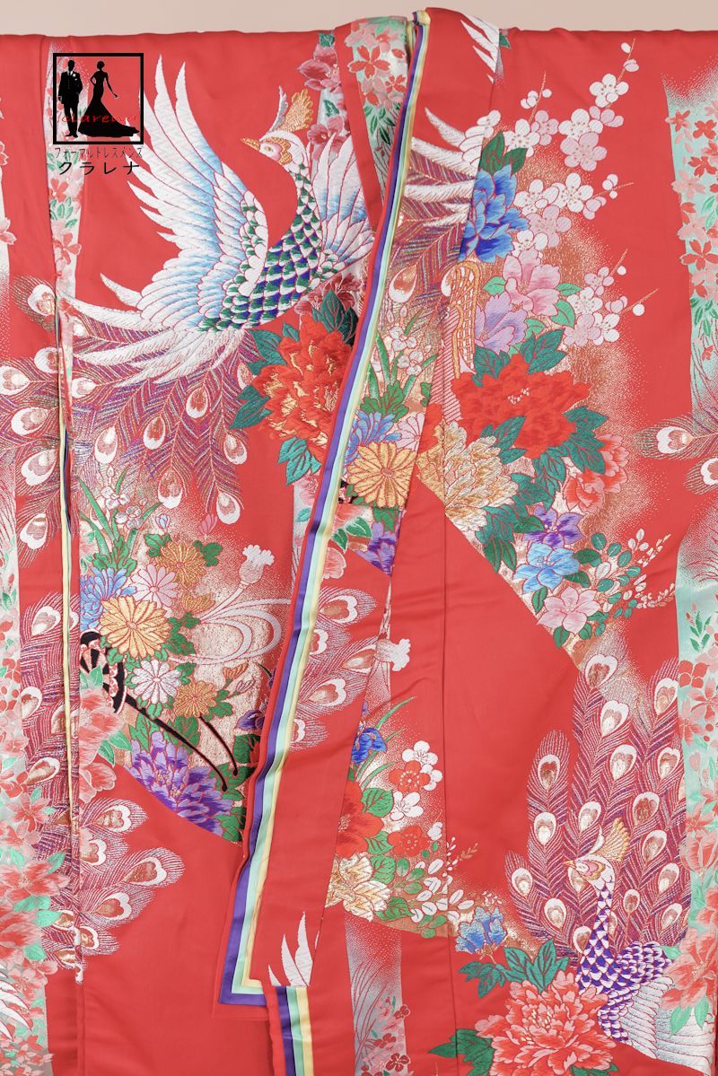 フォーマル衣装 朱色 正絹 色打掛 八重重ね 孔雀 花車 祝花房 販売 花嫁衣裳 クラレナの cl_kimono 2610 品 和装 着物 女性 打掛