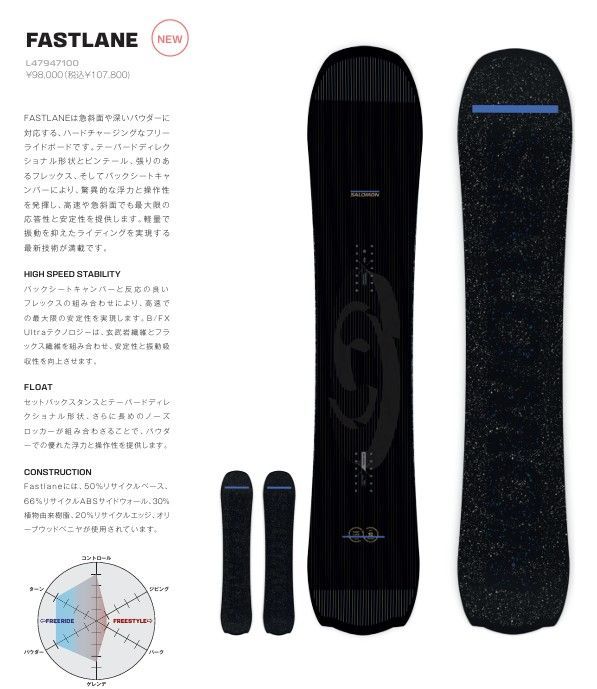 FASTLANEは急斜面や深いパウダーに対応する、ハードチャージングなフリーライドボードです。
