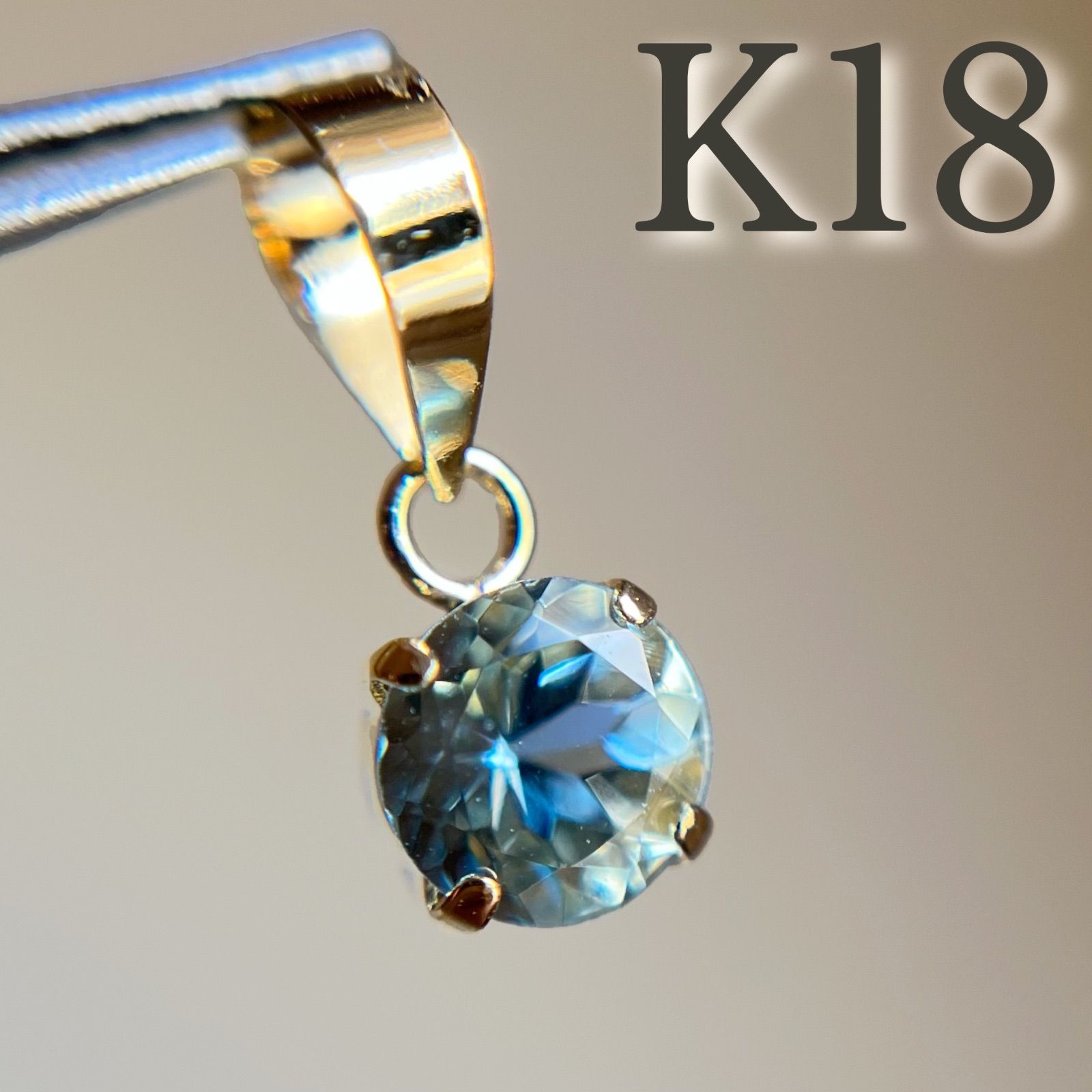 K 18 天然石サンタマリアアクアマリン ラウンド ペンダントトップ チャーム