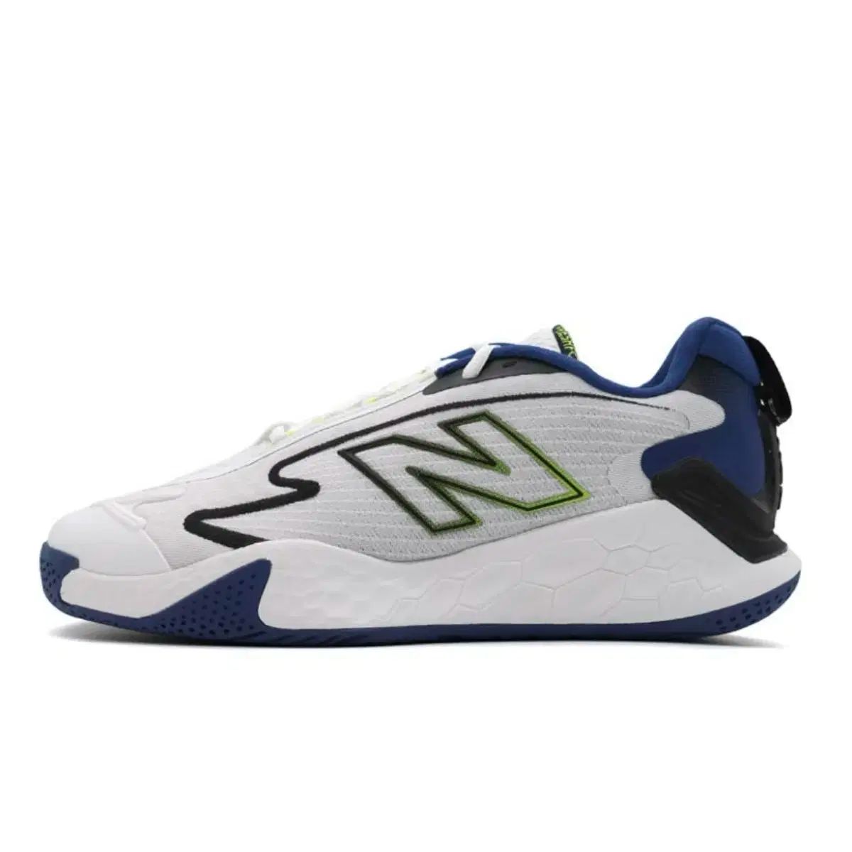 新商品 New Balance オールコート テニスシューズです。285サイズで、メンズ用です。白 바탕にネイビー Nロゴがスタイリッシュに入っています。