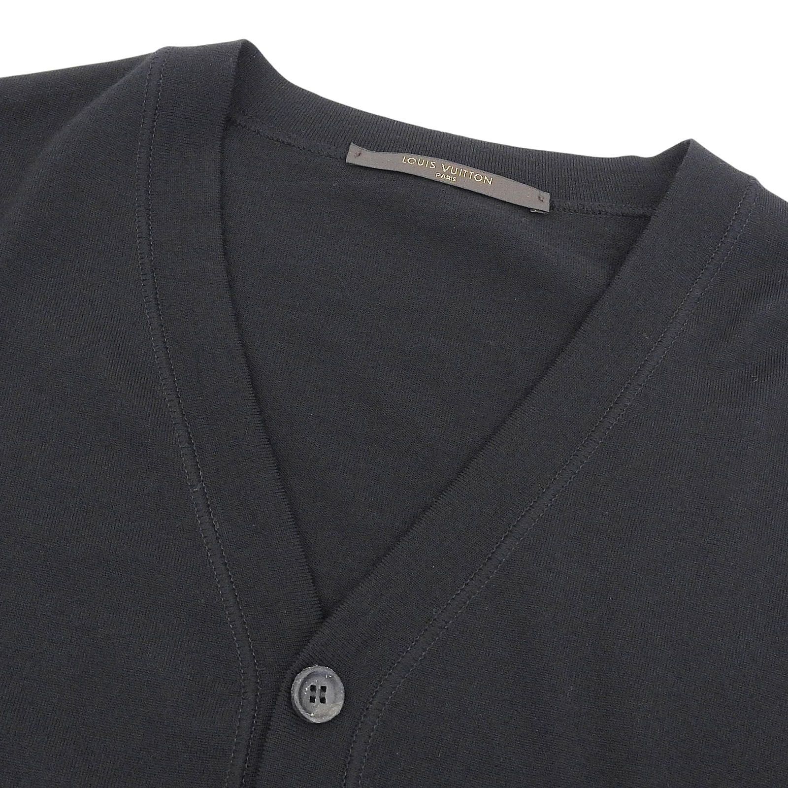 LOUIS VUITTON ルイヴィトン カシミヤ100% LV刺繍 Vネック 長袖 カーディガン ブラック S イタリア製 メンズ