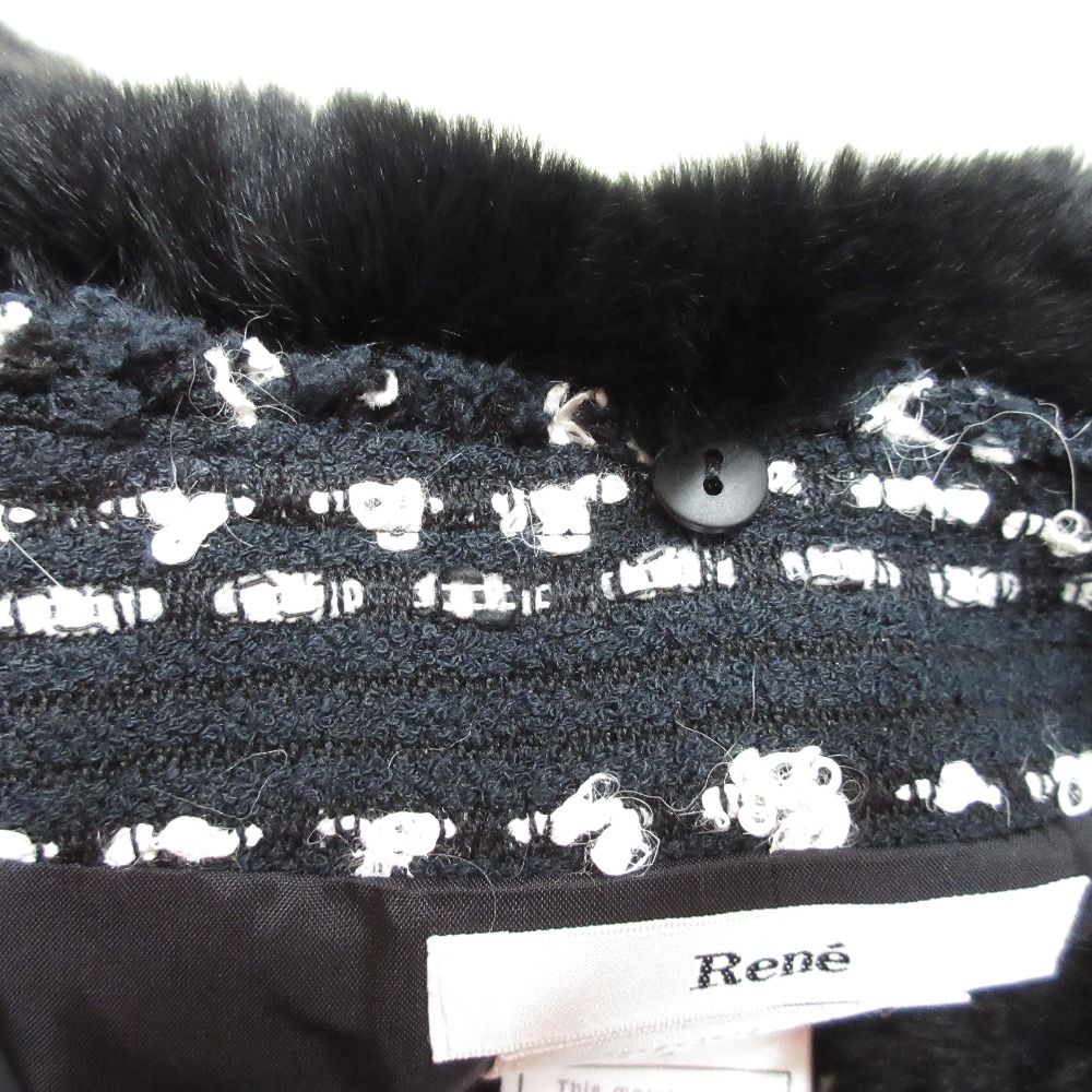 【商品名】Rene ルネ TISSUE レッキスファー付き ジップアップ ツイード ロングコート 38 ブラック ホワイト