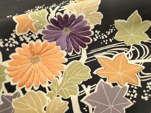 平和屋着物 アンティーク 大正ロマン 九寸名古屋 駒刺繍 流水枝花文 金糸 正絹 hy
