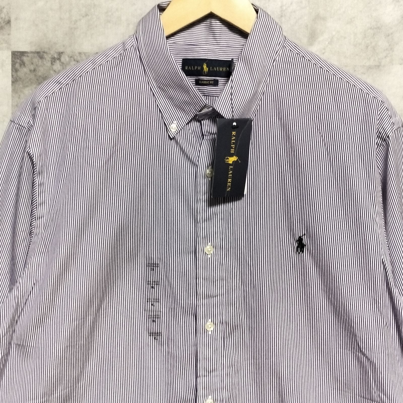 POLO RALPH LAUREN ストライプ 長袖シャツ XLサイズ パープル 紫 綿 コットン ロゴ刺繍 ボタンダウンシャツ ビック
