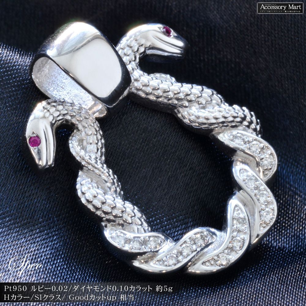 ペンダントトップ メンズ プラチナ ダイヤモンド ルビー 蛇 スネーク ペンダントヘッド ネックレストップ Pt 950 大サイズ 刻印入り 鑑別書付き シンプル プレゼント ギフト マート Shops店