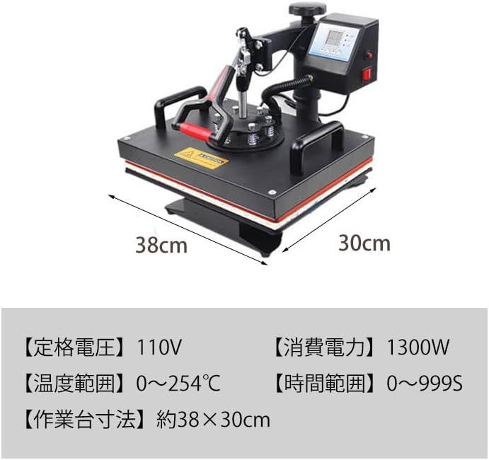 熱転写プレス本体 Tシャツに転写 30 38 CM大表面 スイングアウェイ ヒートプレスマシン DIY熱印刷機 卓上型 熱転写プレス PSE認証済