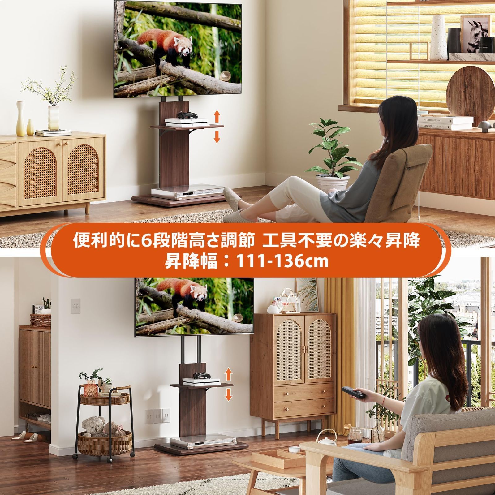キャスター付き 高さ調節 角度回転 テレビ台 調節 移動式 壁掛け 液晶 自立式 TVスタンド 省スペース 壁寄せ ブラウン 32インチ テレビスタンド 65インチ 耐荷重 WLIVE 40 kg