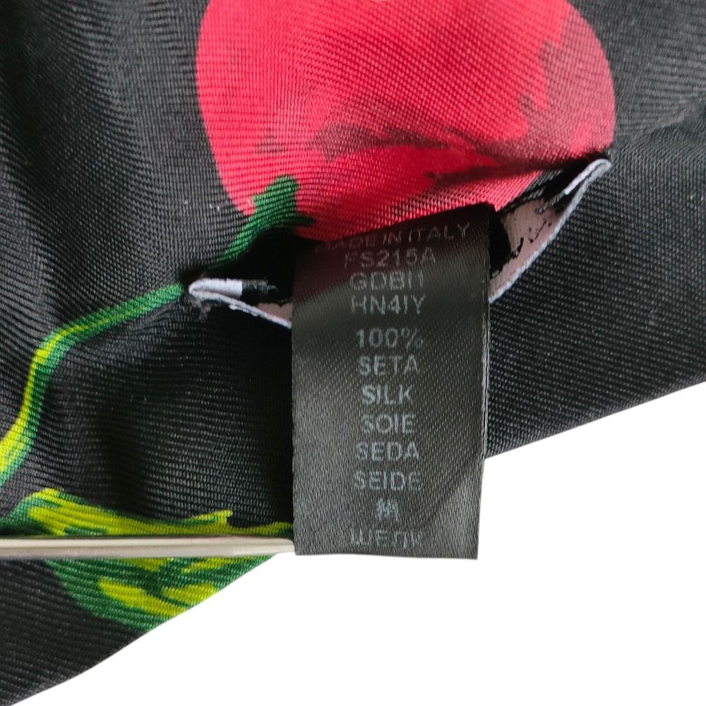 DOLCE-GABBANA ドルチェアンドガッバーナ ドルガバ シルク100% チェリープリント ツイル スカーフ ブラック×レッド レディース 古着