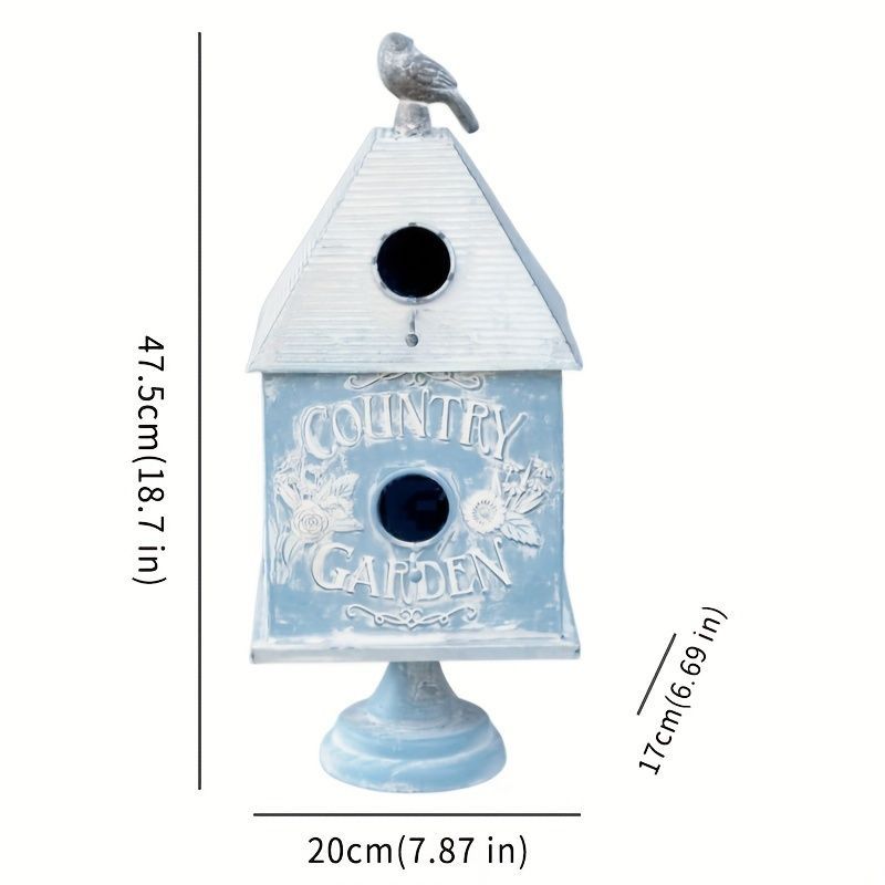 屋外のお庭やバルコニーに、可愛らしい鳥の巣箱を設置してみませんか?このバードハウスは金属製で、スタンドが付いているので簡単に設置できます。鳥たちが休憩や巣作りをするための安全で落ち着いた場所を提供してあげることができます。自然と共に過ごす時間を大切にしたい方におすすめです。