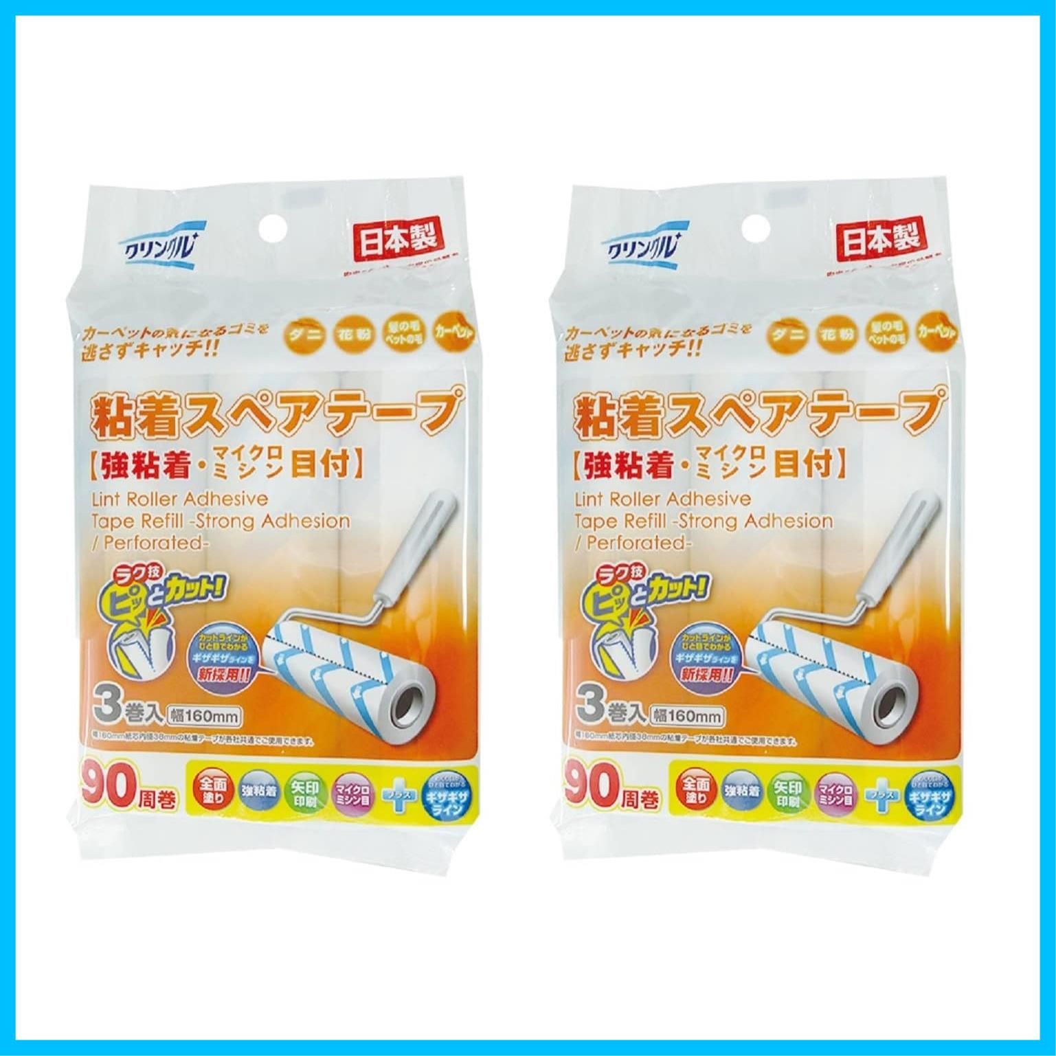 【2個セット】ライフ堂 Life-do.Plus クリンクル 粘着スペアテープ カーペット対応 全面塗り 強粘着 ミシン目付き 各社共通サイズ 90周 3巻入 ひと目で分かるカットライン サイドカット 矢印印刷 LD-310
