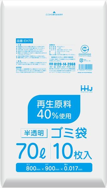 80点セット EH70 再生原料40%入 70L 半透明 ハウスホールドジャパン 包装 梱包