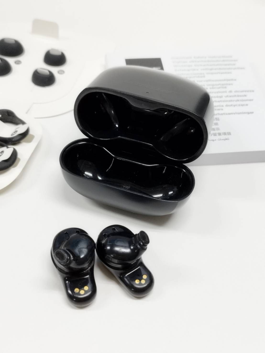 内容物:イヤホン、ケース、イヤーピース、印刷物(画像1枚目に写っているもの)