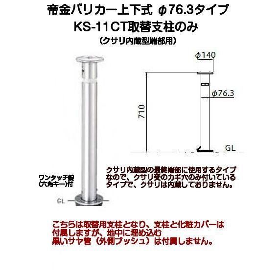 帝金バリカー KS 11 CT取替用支柱 ステンレス製上下式バリカー76 3 mm クサリ内蔵型 端部 CT中身