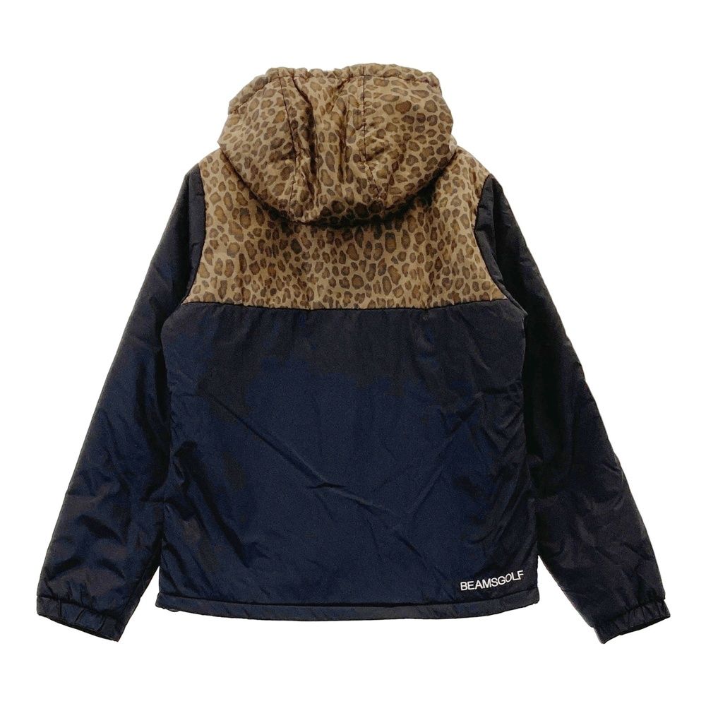 サイズ M BEAMS GOLF ビームスゴルフ フード付き 中綿ジャケット レオパード柄 ブラック系 ゴルフウェア レディース ストスト