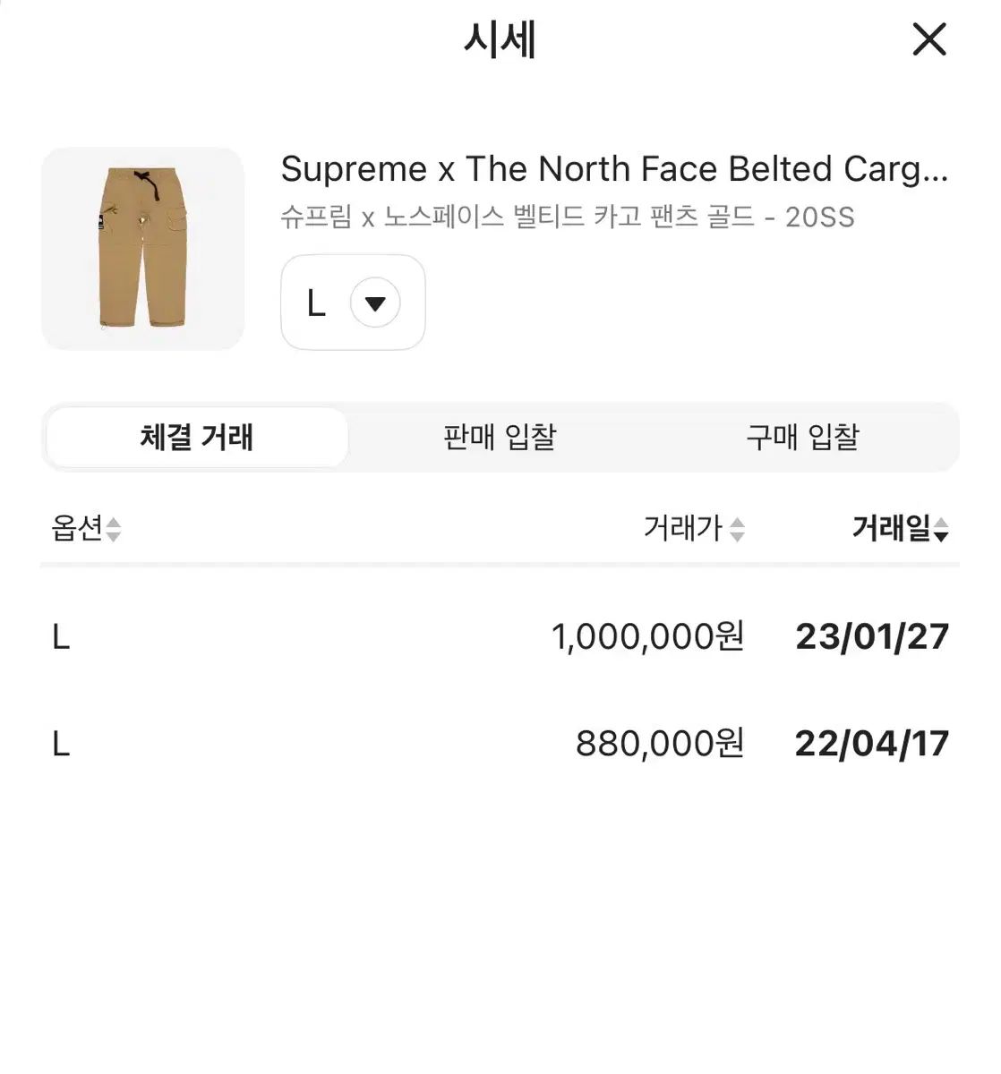 クリーム取引価格が1,000,000~880,000円ですね。