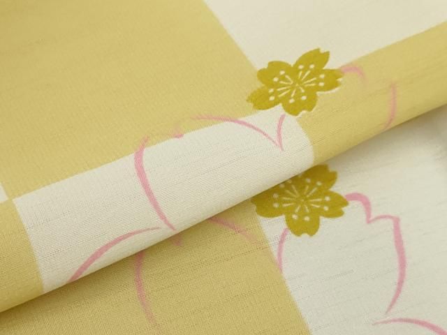 平和屋着物 夏物 小紋 紗 市松桜文 洗える着物 sx