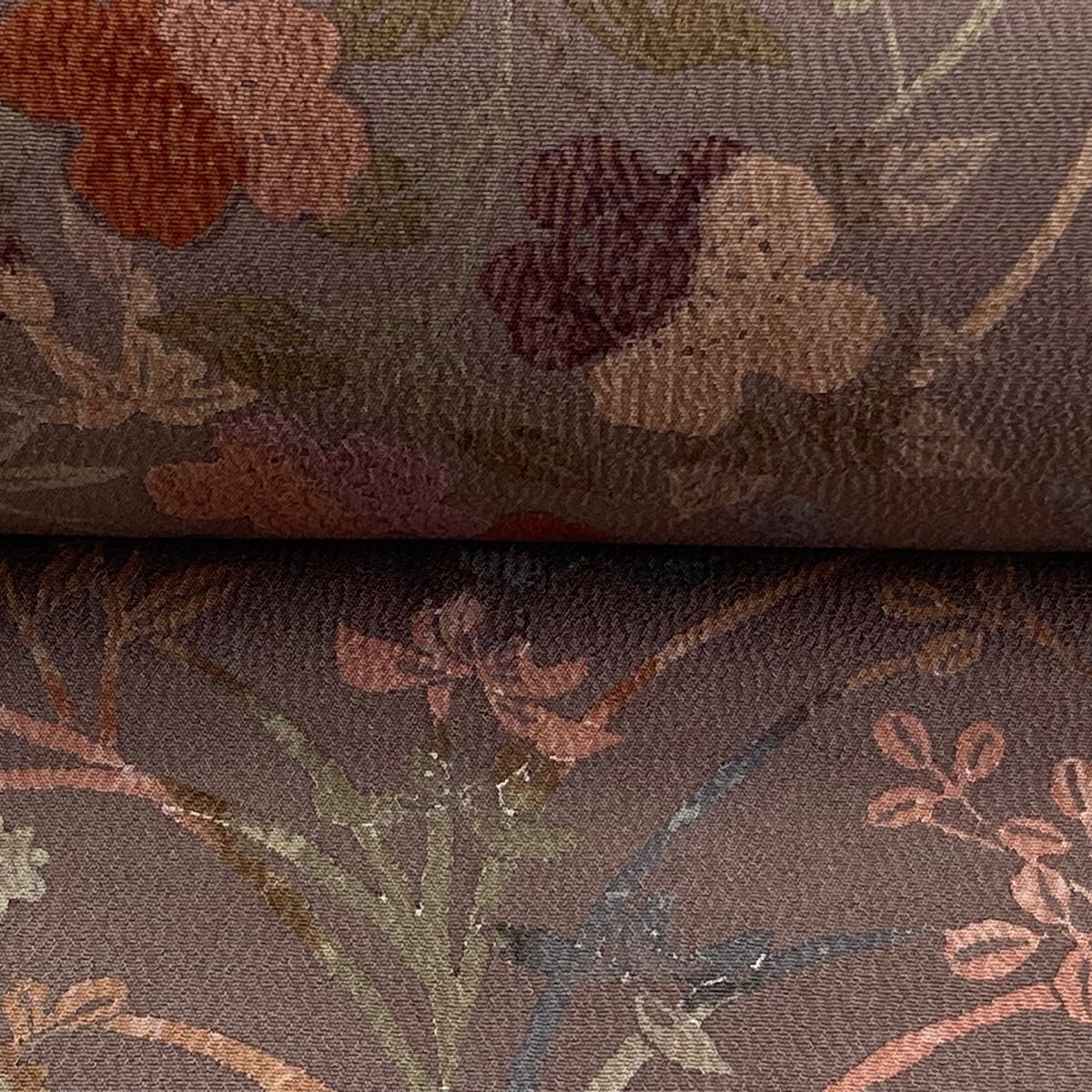 反物 秀品 小紋 草花 縮緬 草木染 灰茶 正絹