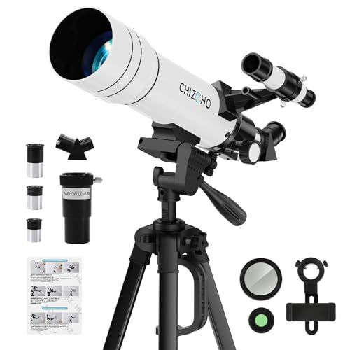 [直径70mmマルチコート光学対物レンズ、明るくクリアな視界を完璧に提供します] CHIZEHO天体望遠鏡は70mm大口径光学対物レンズを組み込み、光吸収面積を拡大し、複合コーティングにより光透過率を高め、画像をより明るく鮮明にします。(同じ明るさであれば、CT12天体望遠鏡は他の製品に比べ、20%明るくクリアな視界が得られます)