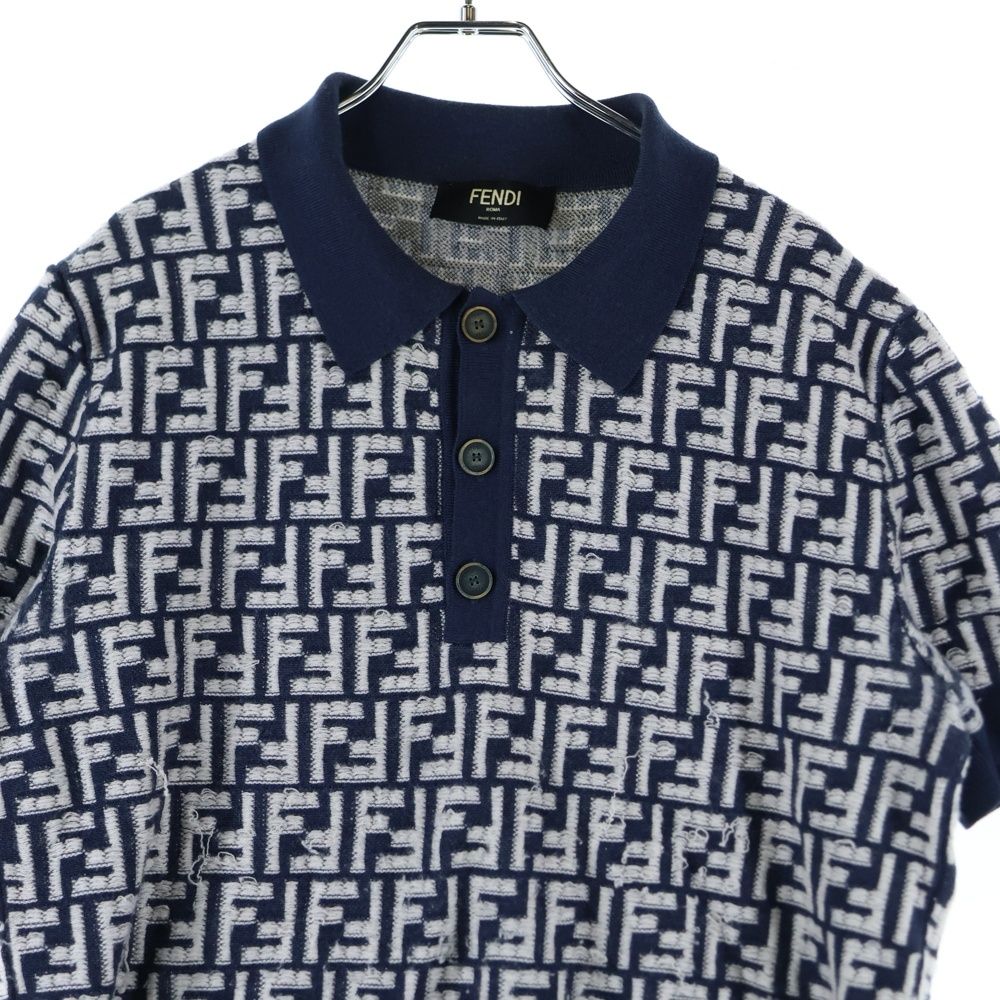 FENDI フェンディ ズッカ総柄 ジャガード ウール 半袖 ニット ポロシャツ ネイビー FZC 349 AR 85