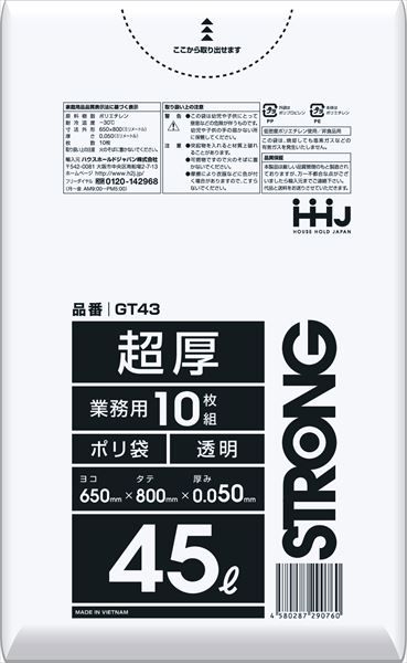 30点セット GT43 ポリ袋45L透明 0 05 ハウスホールドジャパン ゴミ袋 ポリ袋