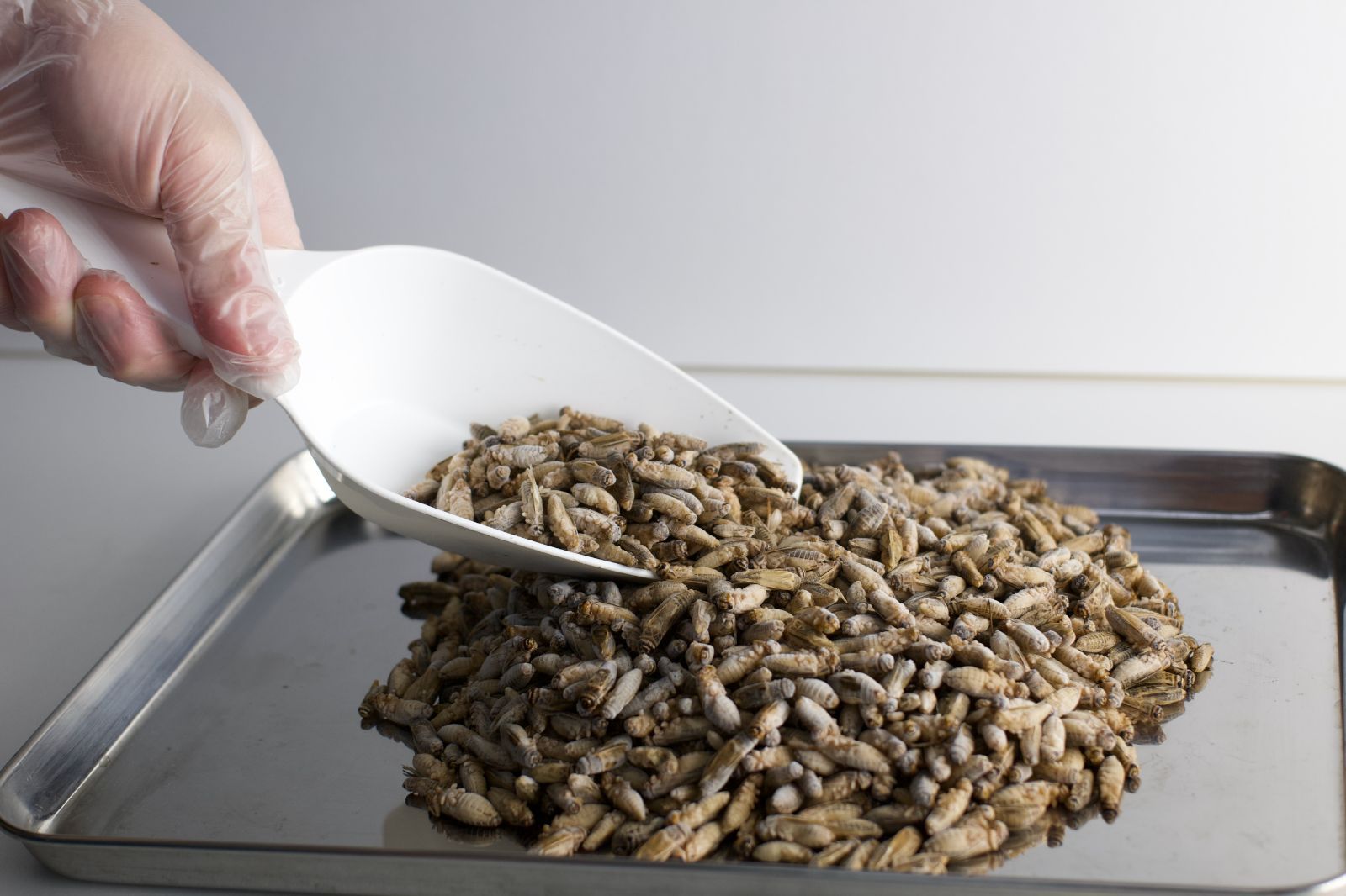栄養満点な飼料で、屋内で品質管理をして養殖したイエコオロギです