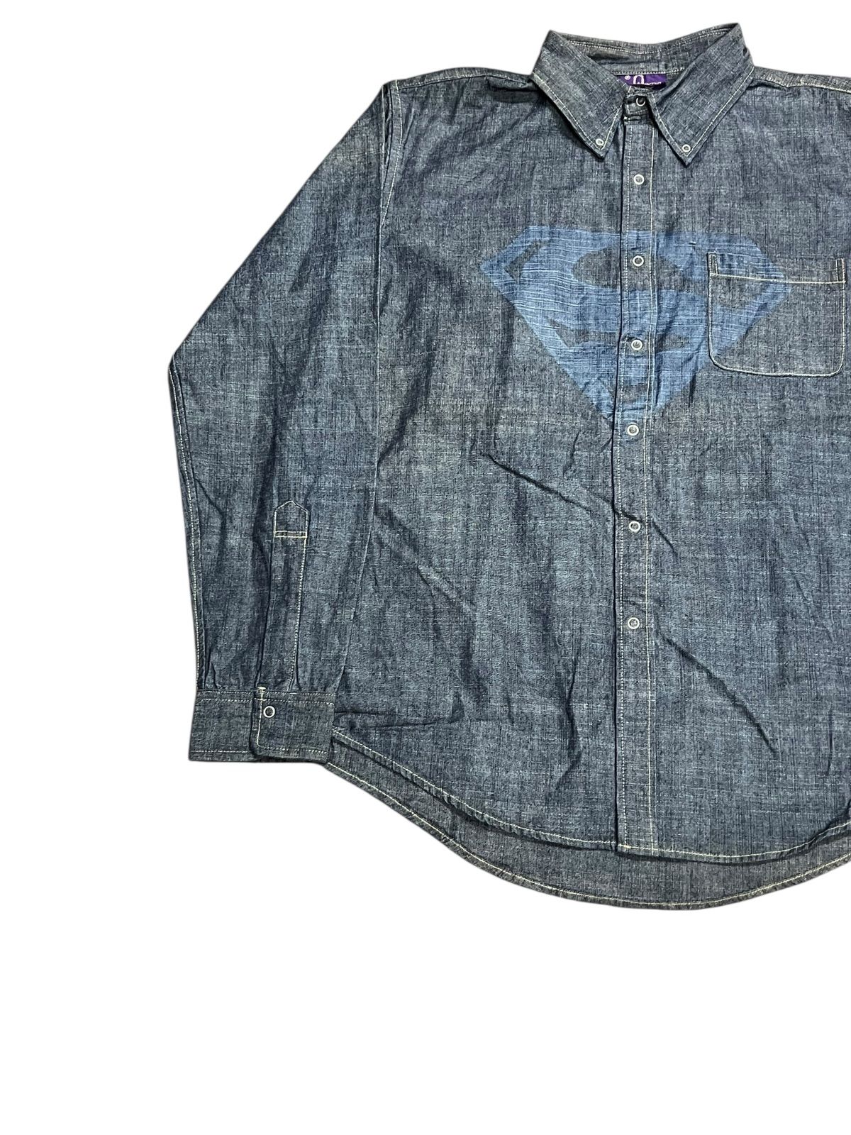 シンプルなシャンブレーシャツにスーパーマンのロゴが施されている1着。