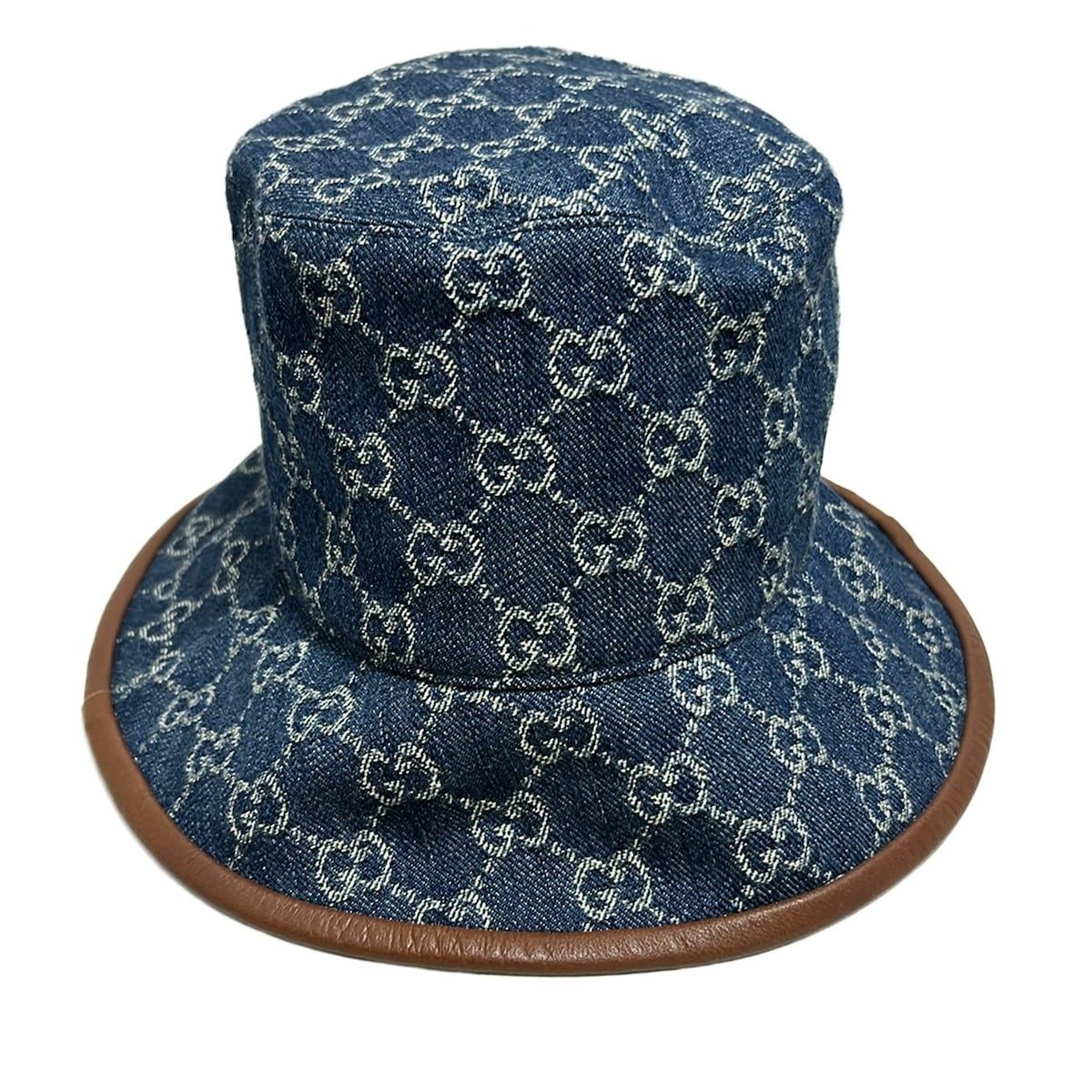 GUCCI グッチ ハット M 58.0 cm - ネイビー×ベージュ×ダークブラウン GG柄 デニム コットン レザー