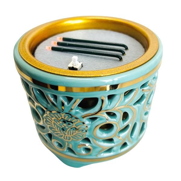 火を使わずな電子線香 仏具 LED電子線香 サンやすらぎ 寝かせ線香タイプ 透かし香炉 差金付 2.5寸 (東用)
