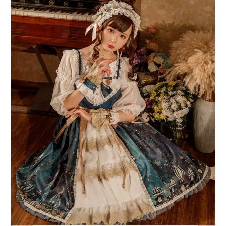 ワンピース ロリータ コスプレ 衣装 姫 ドレス 長袖 森ガール 萌え ゆめかわいい レトロ 中世紀 宮殿風 貴族風 リボン ボリューム