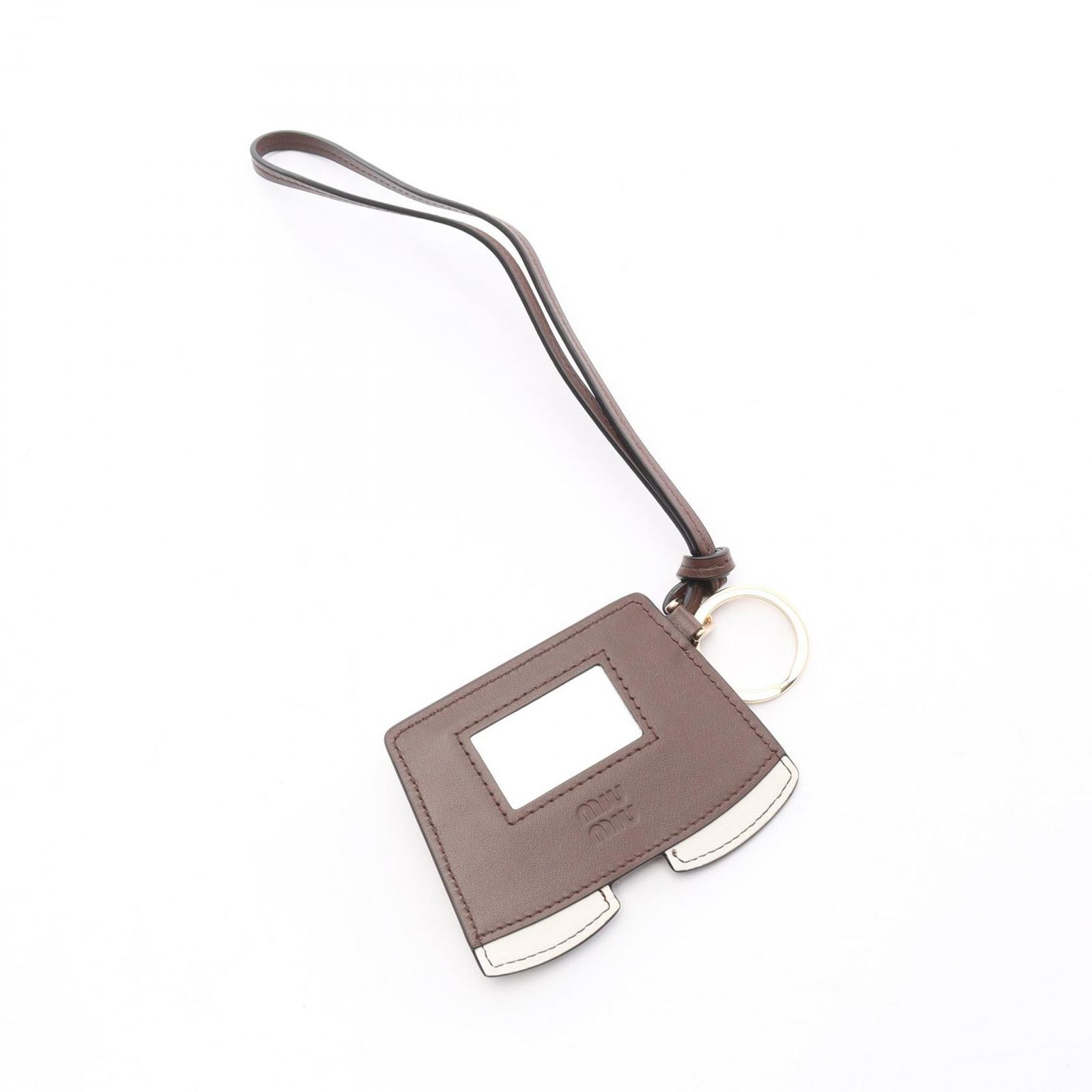 ミュウ Miu チャーム SKIRT ベージュ系 レザー キーホルダー レディース