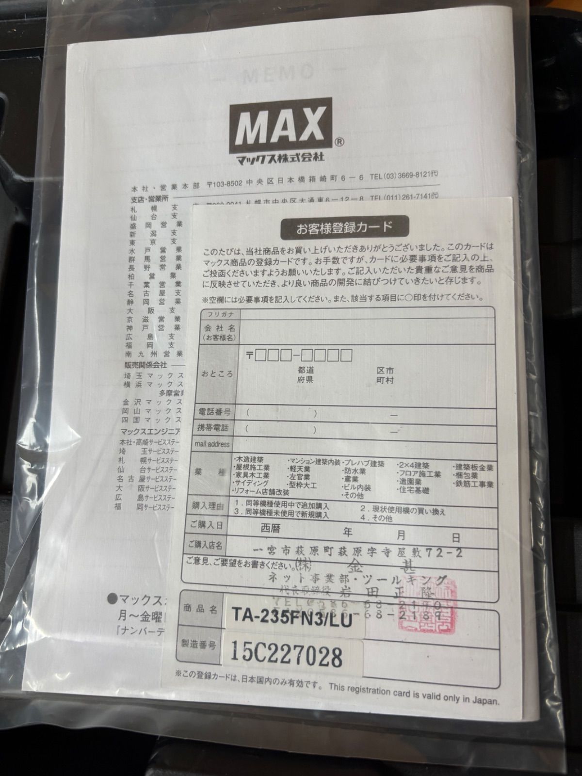 MAX 常圧 フィニッシュネイラ TA 235 FN 3 LU