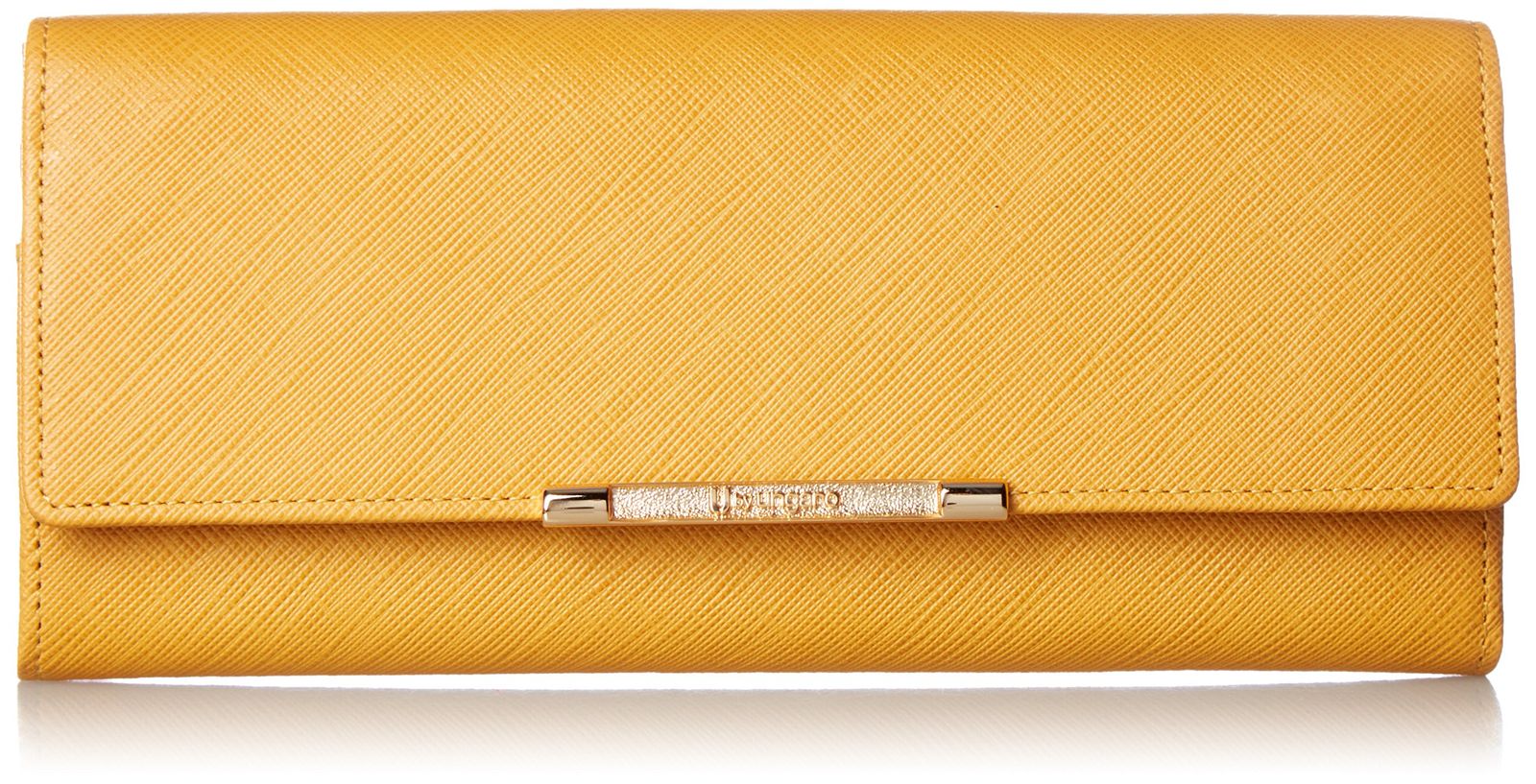 ユー バイ ウンガロ 長財布 アイガー 牛革 型押し ロゴ入りブローチ ボックス型小銭入れ付 ダブルボタン式 イエロー