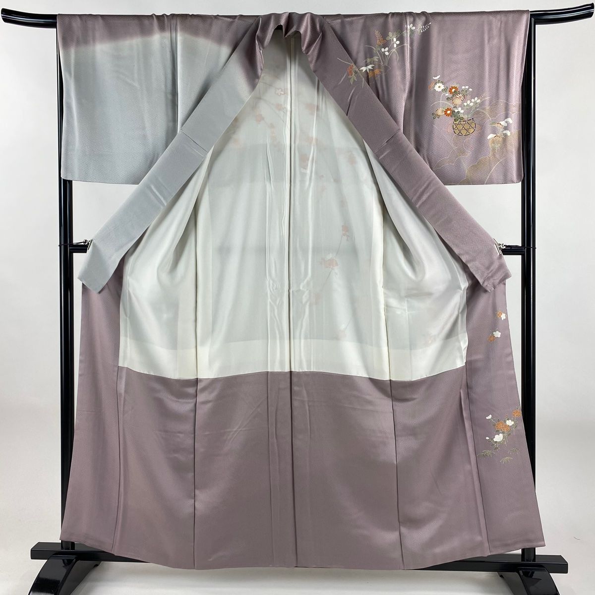 訪問着 身丈159 cm 裄丈65.5 M 袷 雪輪 草花 金彩 染め分け 薄紫 正絹