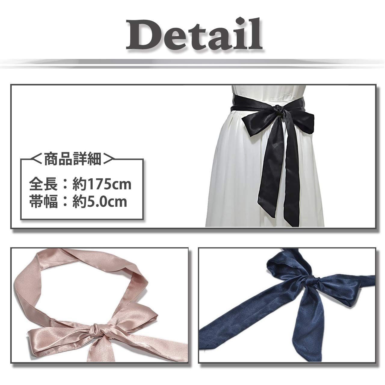 パーティーなどのドレスや カジュアルにも 気軽に使える 可愛いデザイン。サテン地 特有のおしゃれ感がオススメの リボンタイ ベルト!