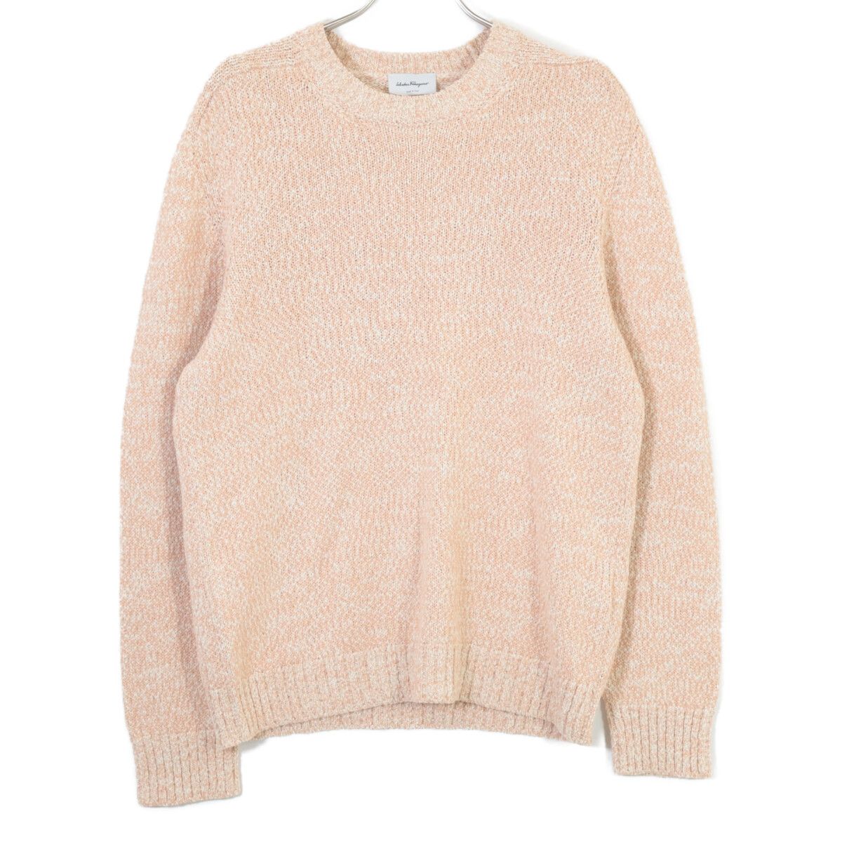 Salvatore Ferragamo サルヴァトーレフェラガモ 0728236 ピンク コットン×ウール シルク混 リブネック ロングスリーブニットプルオーバー L