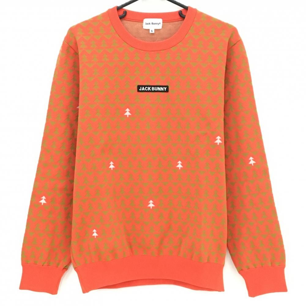 超 ジャックバニー セーター オレンジ×イエローブラウン ツリー柄 ポリエステル100% メンズ 6 XL ゴルフウェア Jack Bunny