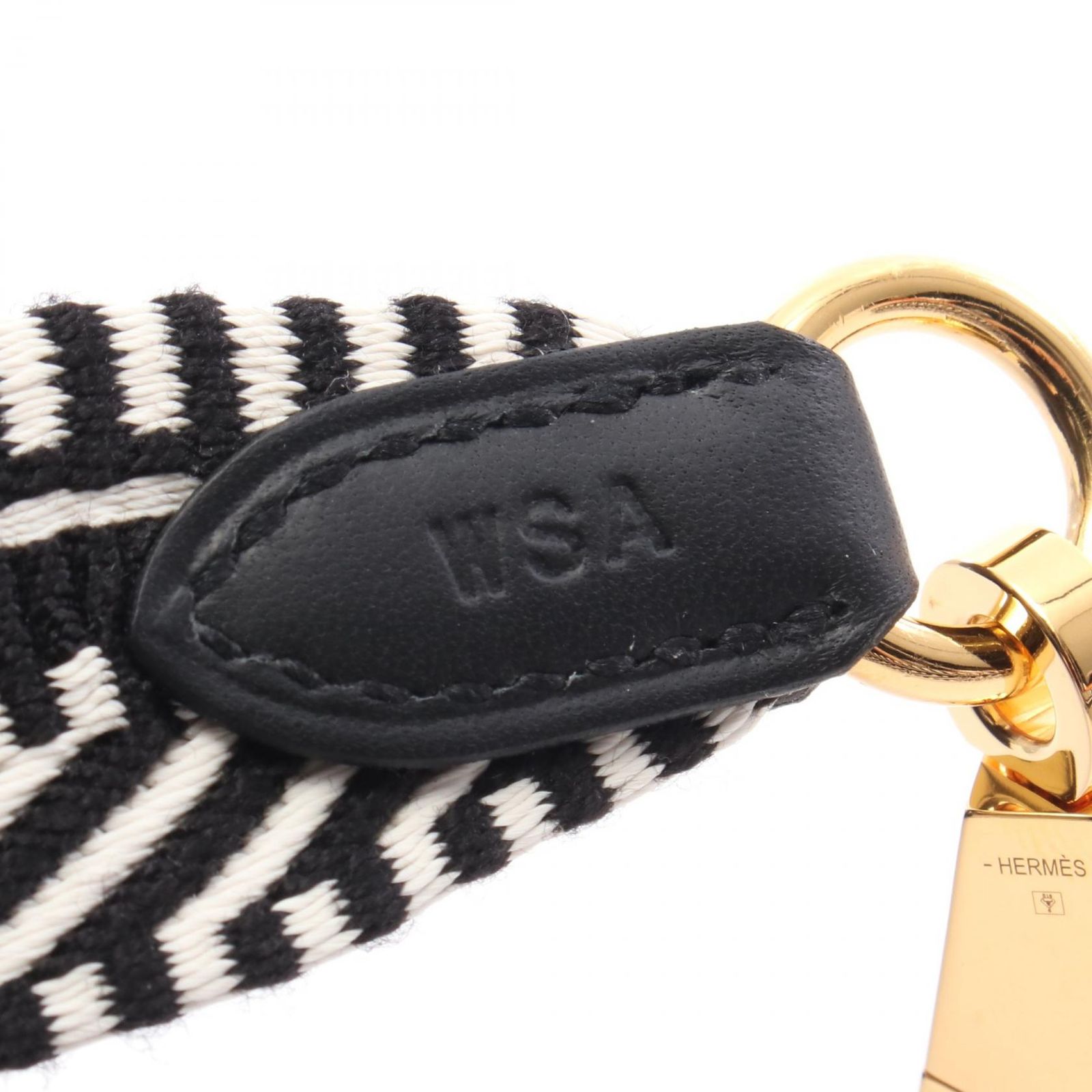 エルメス HERMES ショルダーストラップ バンドリエール サングル カヴァル 25mm ブラック ホワイト キャンバス レディース
