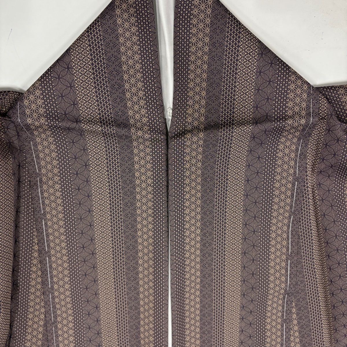 江戸小紋 身丈156 cm 裄丈64.5 M 袷 七宝文 麻の葉 灰紫 正絹 秀品