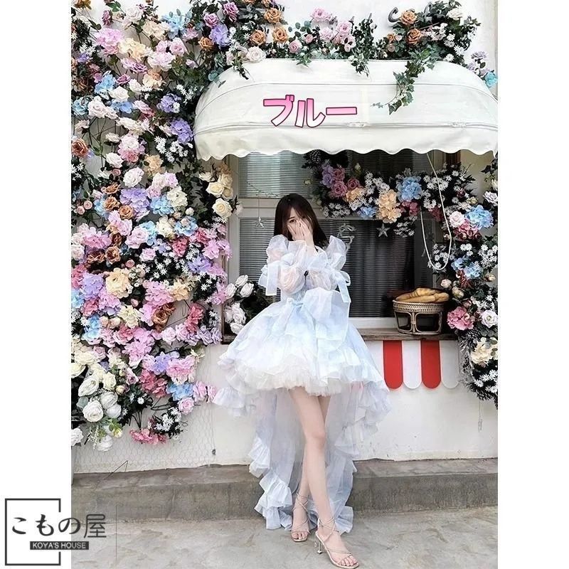 ロリータドレス 華麗なフレンチ花嫁ドレス 大きなトレーン付き ロリータケーキドレス ブルー ピンク パープル 結婚式