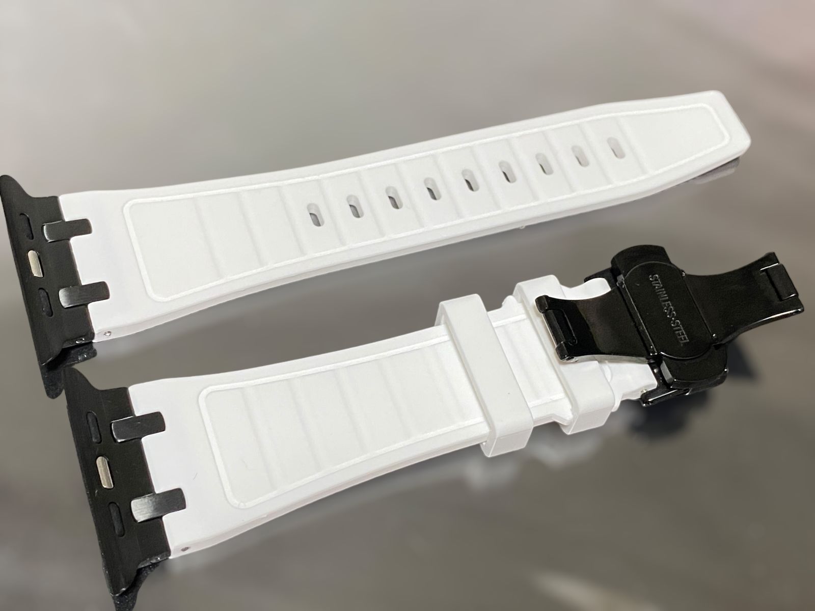 ガンメタ ホワイト アップルウォッチ ラバーベルト Apple Watch ケース カバー 40 mm 41 44 45 49 用