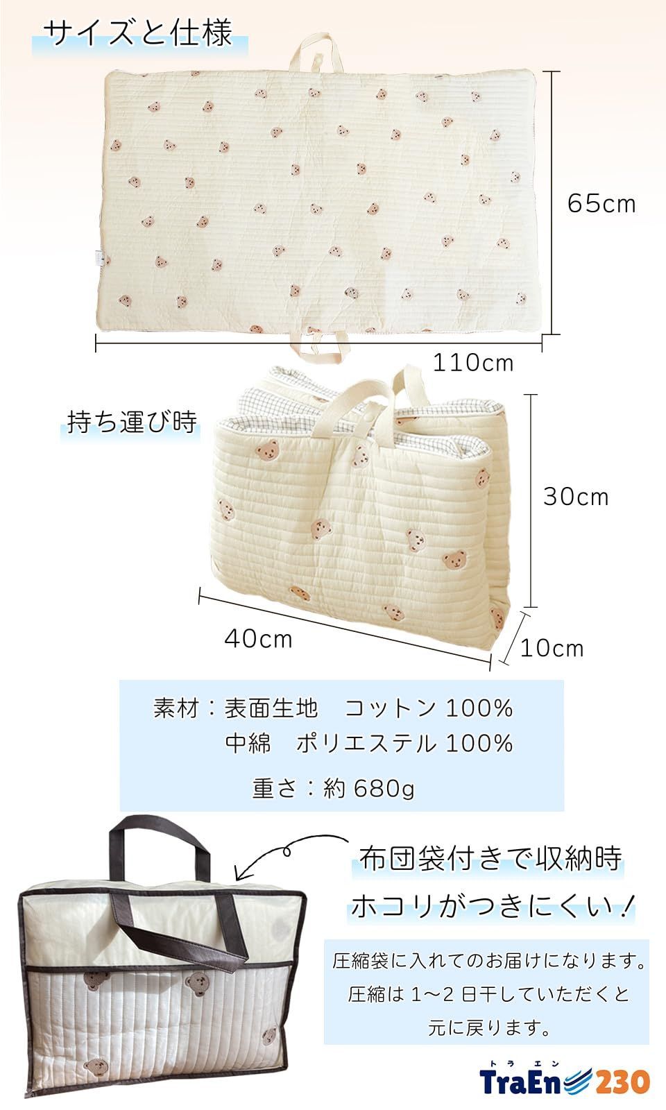TraEn230 お昼寝布団セット 敷布団 ベビー用 保育園 敷き布団のみ 赤ちゃん お昼寝マット ベビー お昼寝布団バッグ