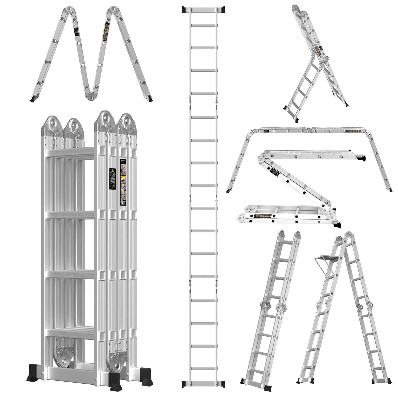 【一台多役、超変形ラダー登場】4段*4段多機能はしご 場所にあわせて12変化!便利なハシゴ!はしごとして、脚立として、そしてなんと足場としても使用できるマルチなはしご、満を持して登場。使い方法は無限大。大掃除に、雪下ろしに、ガーデニングに、洗車などに、長時間の高所作業にもおすすめ!専用プレート2枚付きで、作業台にもなりますよ!一家に一台必要のはしごです。