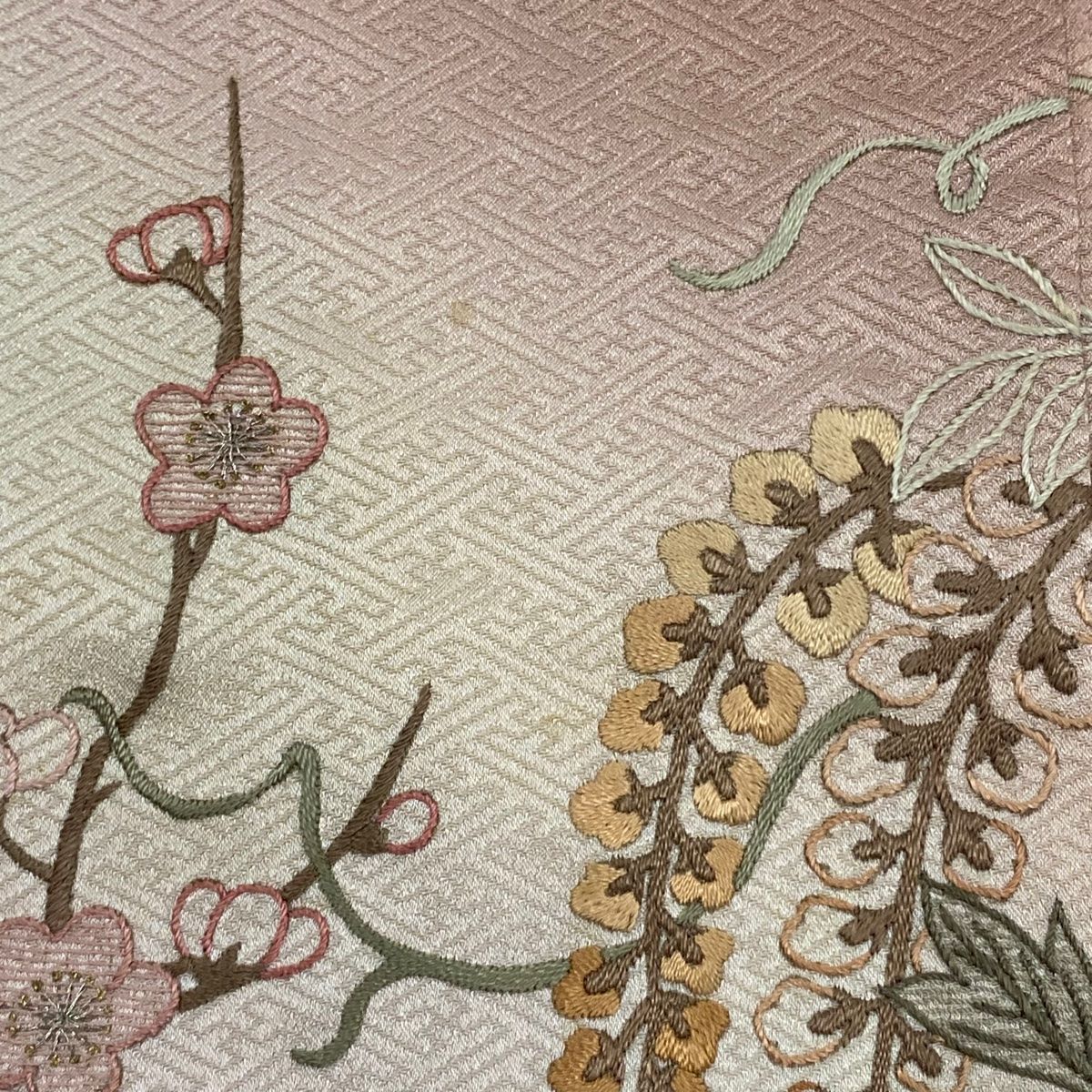 訪問着 身丈154 cm 裄丈65 M 袷 草花 枝花 刺繍 金銀糸 ピンクベージュ 正絹 秀品