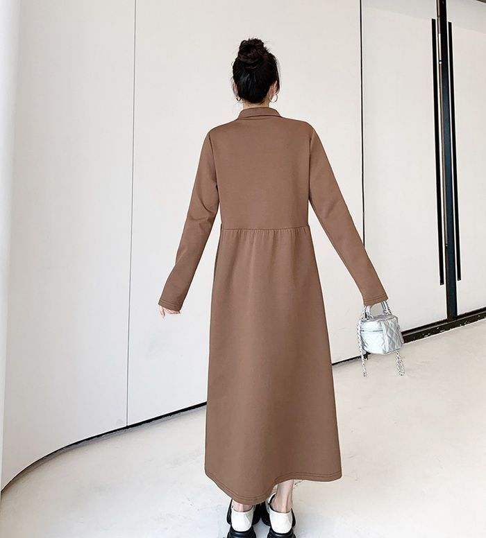 ワンピース レディース ハーフジップ タートルネック ロングワンピース 長袖 ロング丈 大人 通勤 通学 無地 着痩せ ゆったり フォーマル シンプル 春 秋冬 体型カバー 20代 30代 40代 お呼ばれ xkmilyx 77 DZ 20