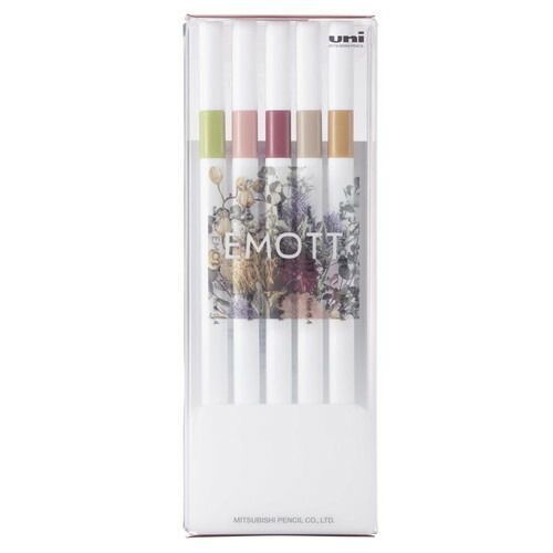 #三菱鉛筆水性サインペンEMOTT5色NO.9描線幅:0.4mmエクリュ・アッシュローズ・シーフォグ・ストレートブルー・サックスブルーPEMSY5C.NO9