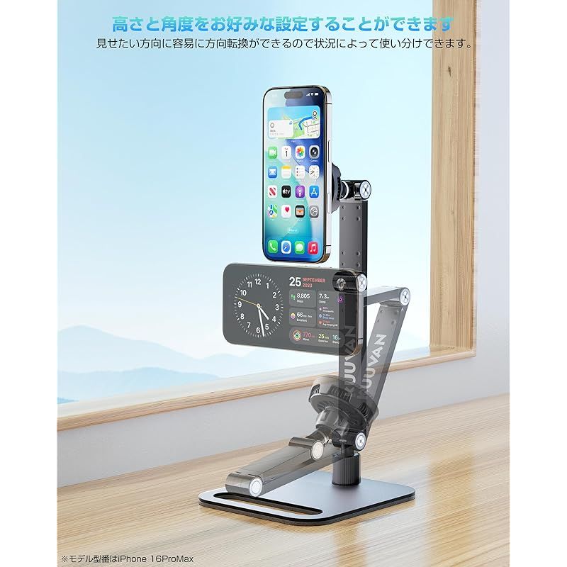 【MagSafe対応・瞬間吸着】700gまでのスマートフォンを固定できる強力マグネットを搭載しております。ボールジョイントで360度回転や自由な角度に調整し、固定することができます。